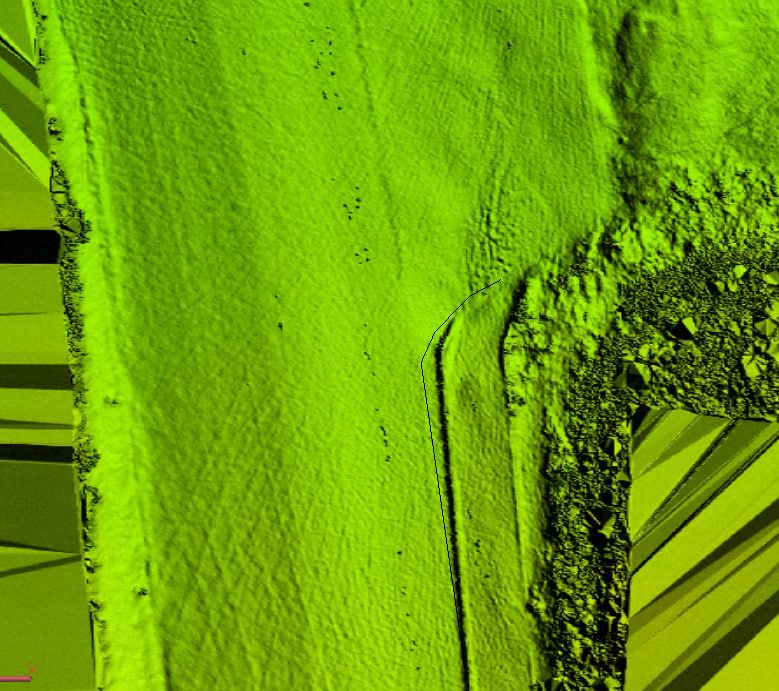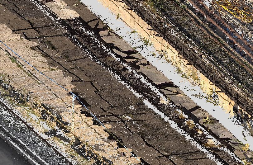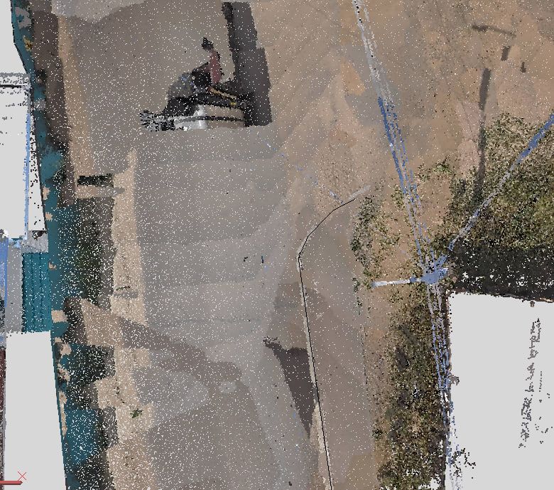На фото ниже была выявлена проблема с поехавшей раскраской. Для наглядности оставил бордюр, который был отрисован по раскрашенному облаку. На ЦМР видно, что на самом деле бордюр находится в другом месте. Начали разбираться и выявили, что в CoPre при раскраске был применён быстрый режим раскраски.
