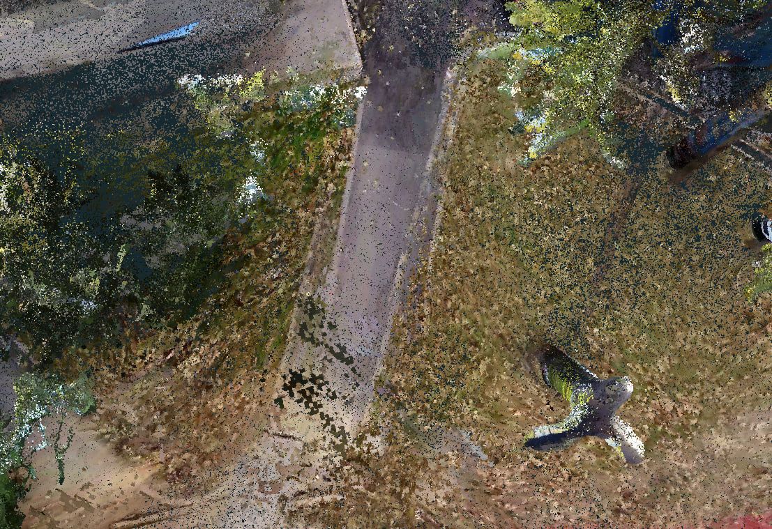 Далее фото облака со сканера Navmopo p1, где видно, что произошло задвоение раскраски. Пришлось работать по интенсивности.